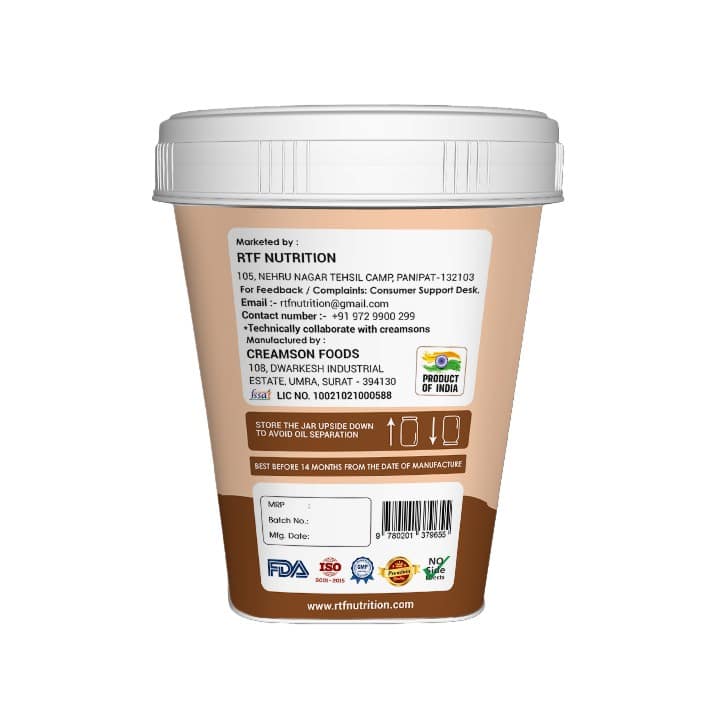 “Indulge in the perfect blend of rich, creamy peanut butter and decadent chocolate crunchiness with our RTF Nutrition Peanut Butter with Chocolate Crunchy. Savor every spoonful of this 1kg pack, packed with a whopping 21% protein punch, making it an ideal choice for fitness enthusiasts and health-conscious individuals alike. Crafted with care, our peanut butter is free from trans fat and hydrogenated oils, ensuring you enjoy guilt-free goodness with every bite. Plus, it’s free from artificial ingredients, giving you the assurance of pure, wholesome nutrition. Whether you spread it on toast, swirl it into smoothies, or simply enjoy it straight from the jar, our RTF Nutrition Peanut Butter with Chocolate Crunchy promises to delight your taste buds while fueling your body with the goodness it deserves. Experience the perfect balance of flavor and nutrition – indulge in RTF Nutrition Peanut Butter with Chocolate Crunchy today!”