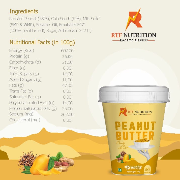 But Mango with Chia Peanut Butter isn’t just about indulgence; it’s about nourishment too. At RTF Nutrition, we believe in fueling your body with the highest quality ingredients, and this product is no exception. Chia seeds, hailed as a superfood for their exceptional nutritional profile, add a delightful crunch and a wealth of benefits to the mix. Rich in omega-3 fatty acids, fiber, protein, and antioxidants, chia seeds contribute to a healthy heart, improved digestion, and sustained energy levels. With each dollop of Mango with Chia Peanut Butter, you’re not just treating your taste buds; you’re providing your body with the nutrients it craves to thrive.